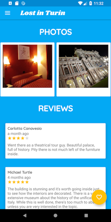 The goal of this multi-screen Android app is to create a tour guide which presents a list of top attractions, restaurants, museums and bars to a user who’s visiting the city of Turin in Piedmont Italy. The app aim is to share local knowledge with who is spending a break in the city. The app wants to be a handy guide for finding location based experiences and to plan a day in the city.
