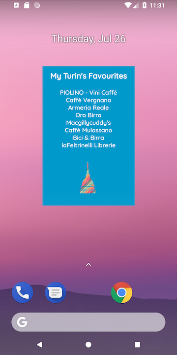 The Widget will show the Favourite location saved by the user, clicking on one item it will open the Detail location of the place.