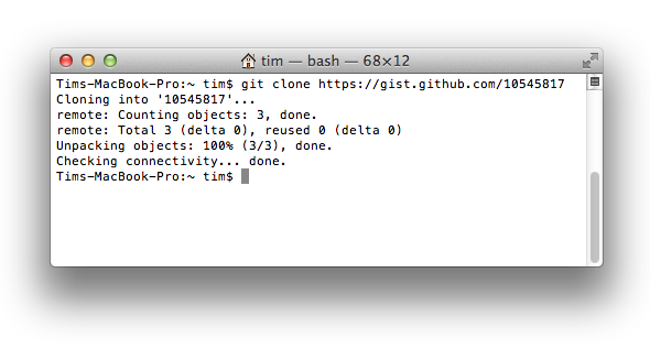 $ git clone https://gist.github.com/tiimgreen/10545817Read more about creating gists.