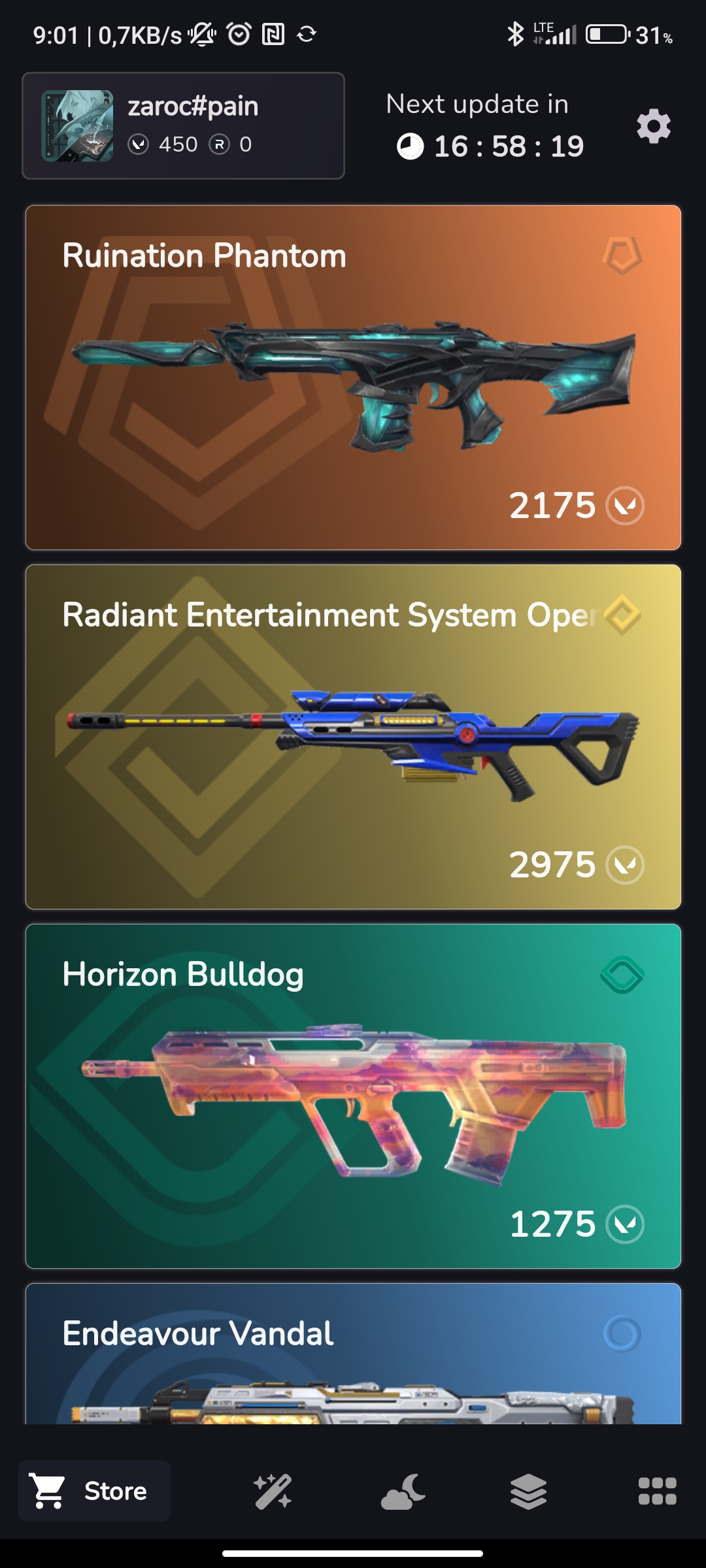 A flutter app using Riots API's and an unofficial API by Not0fficer to display your valorant store offers.