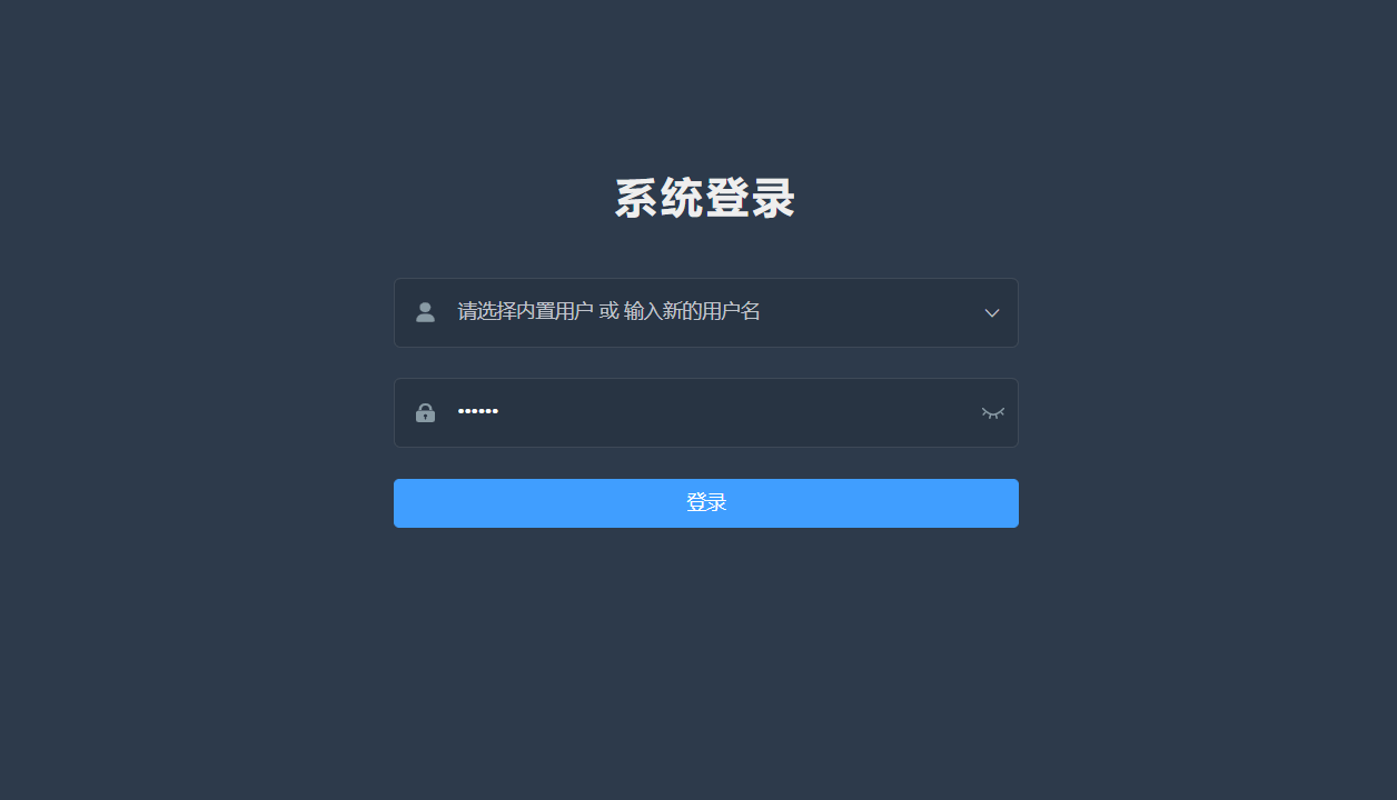 $ npm run serve稍等片刻后,会自动打开浏览器,并跳转到地址 http://localhost:9527/login,选择一个内置用户即可直接登录。
