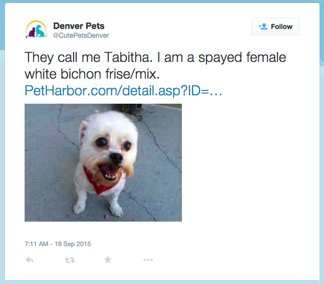 CutePetsDenver Twitter feed: https://twitter.com/CutePetsDenver