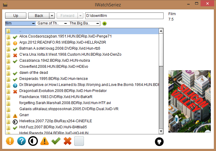 Have you ever forgot, where did you left your favourite series? Have you ever spent hours opening episode after episode to see which of them you remember? Do you have tons of movies in the your download folder, but don't remember which ones you saw? Then IWatchSeriez is for you! I Watch Seriez is a file browser to help you keep track of your progress, latest and next episode info, and much more! Its open-source, and supports bluetooth!