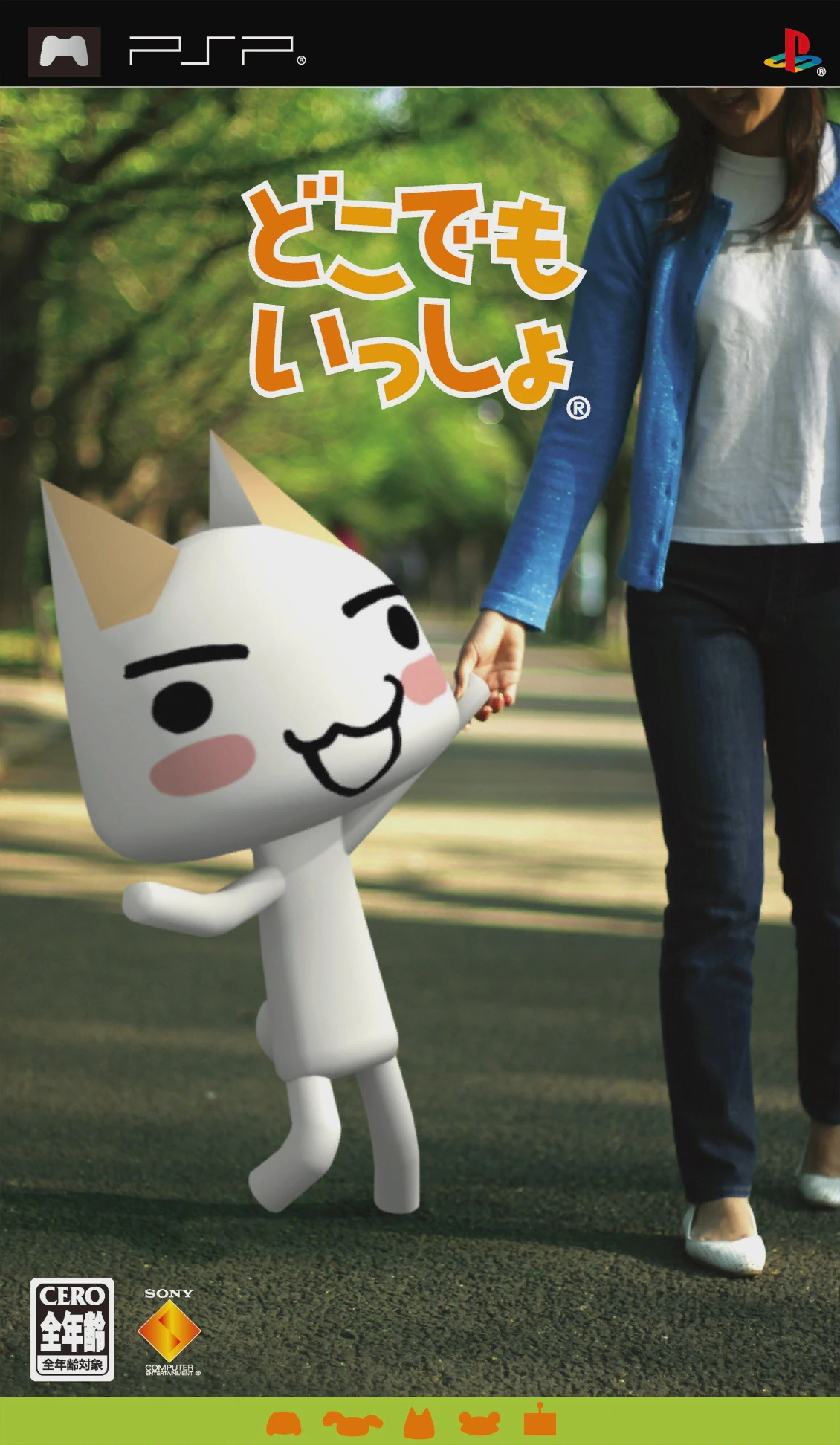 Doko Demo Issyo (Hiragana: どこでもいっしょ) is a Japanese video game about talking creatures called Pokepi or "Pocket People" (see below). The gameplay is like a mix of Tamagotchi and Animal Crossing or a life and pet simulator - Teach Pokepi words that will appear around the game and have conversations as they learn more each day and become closer friends with you. This game was released on the original PlayStation in 1999 and later remade for PlayStation Portable in 2004.